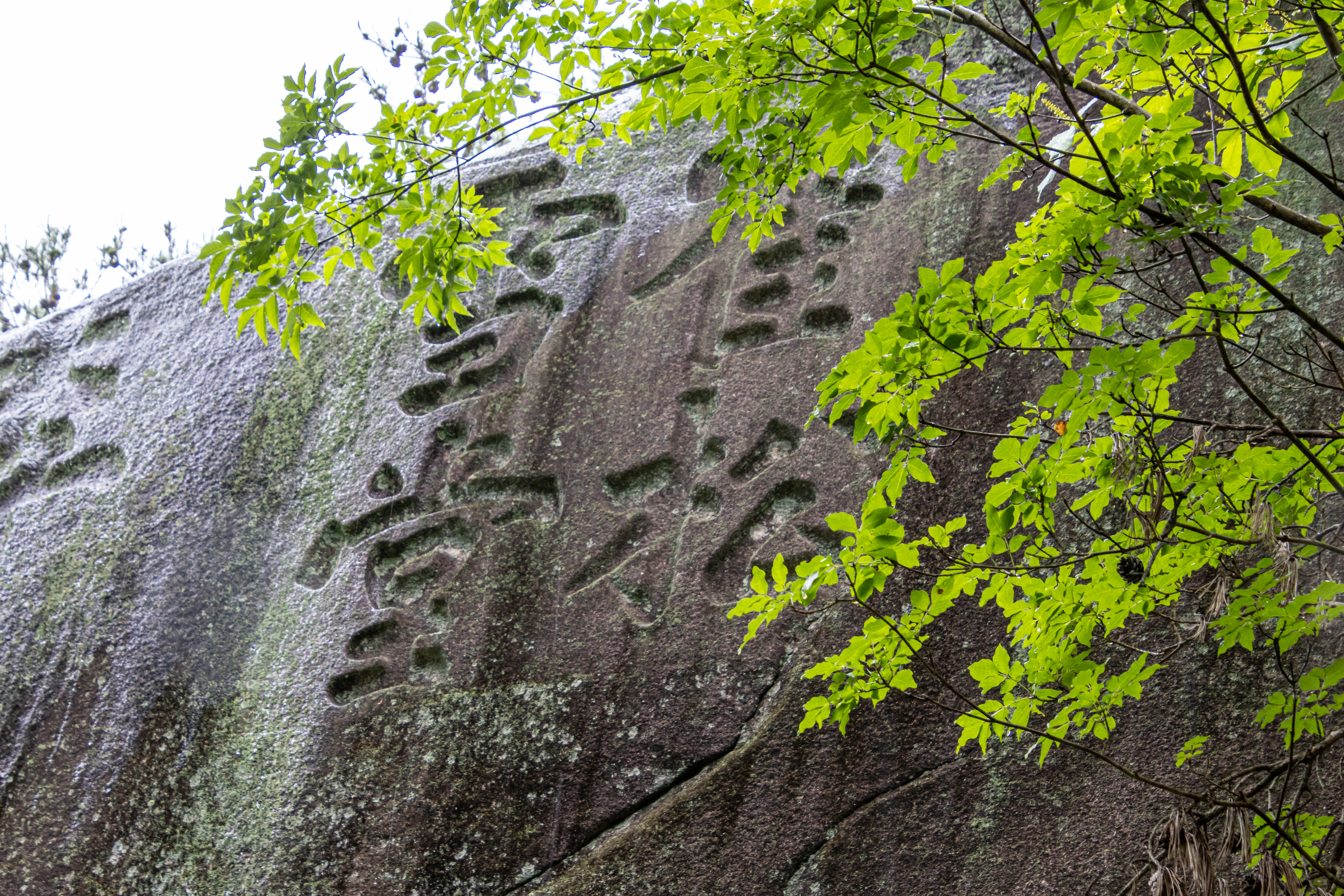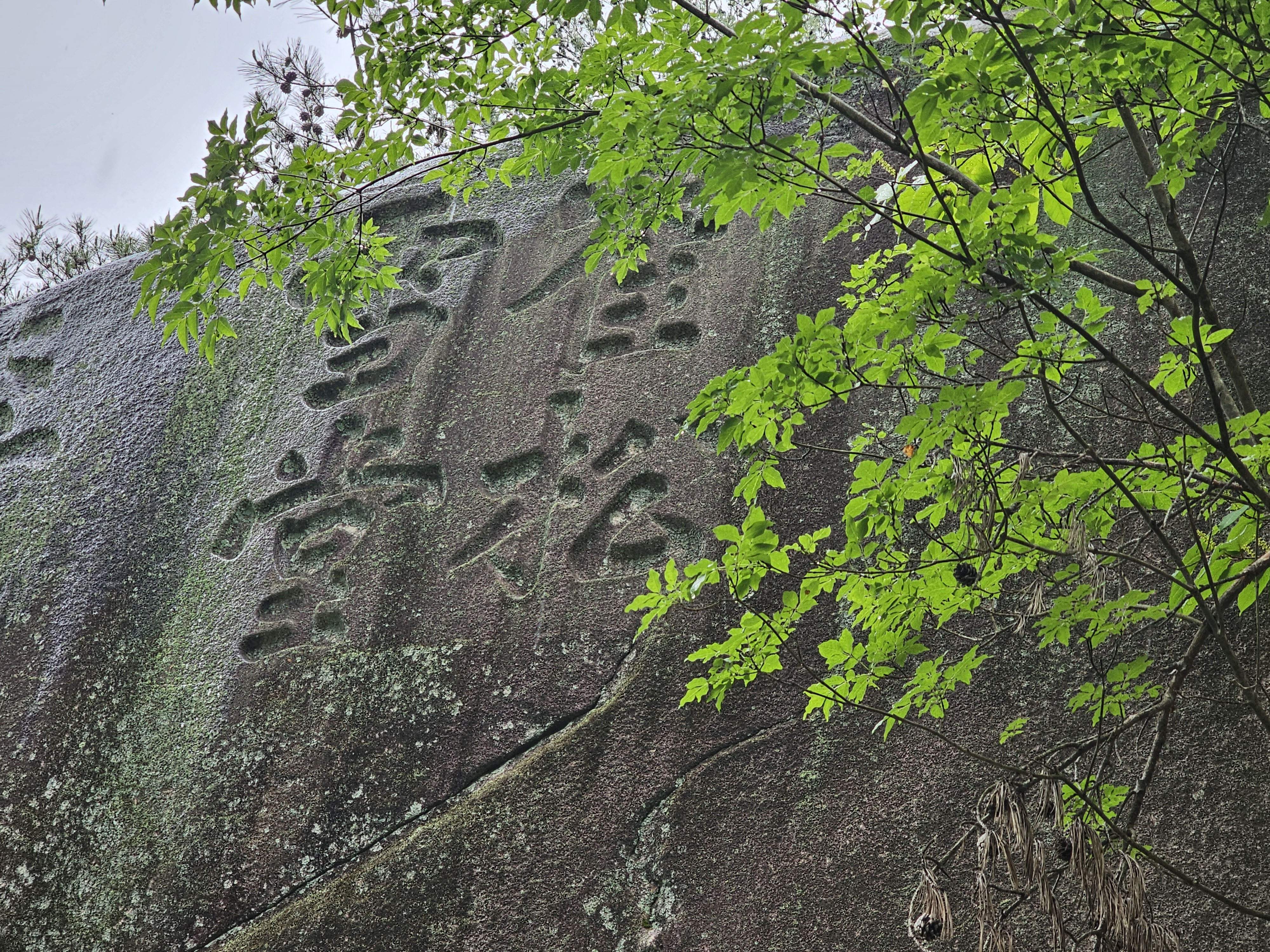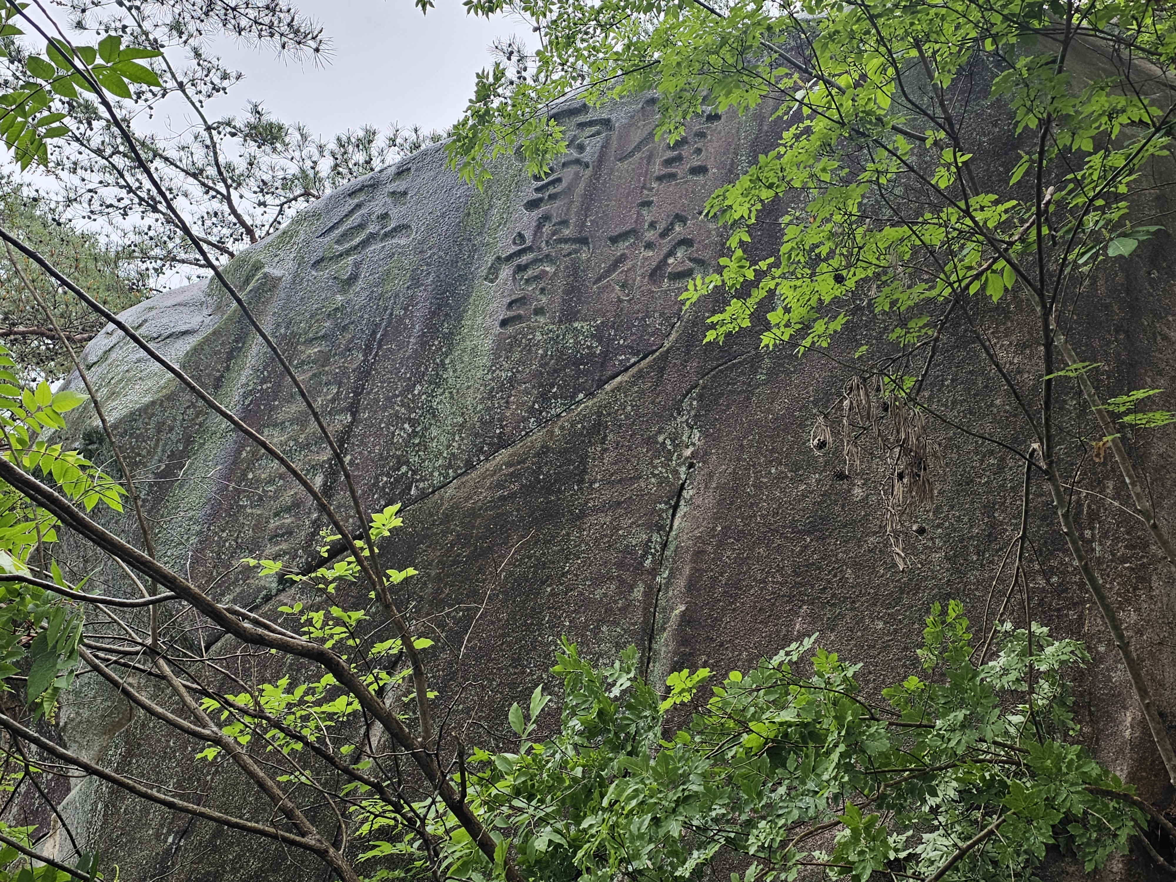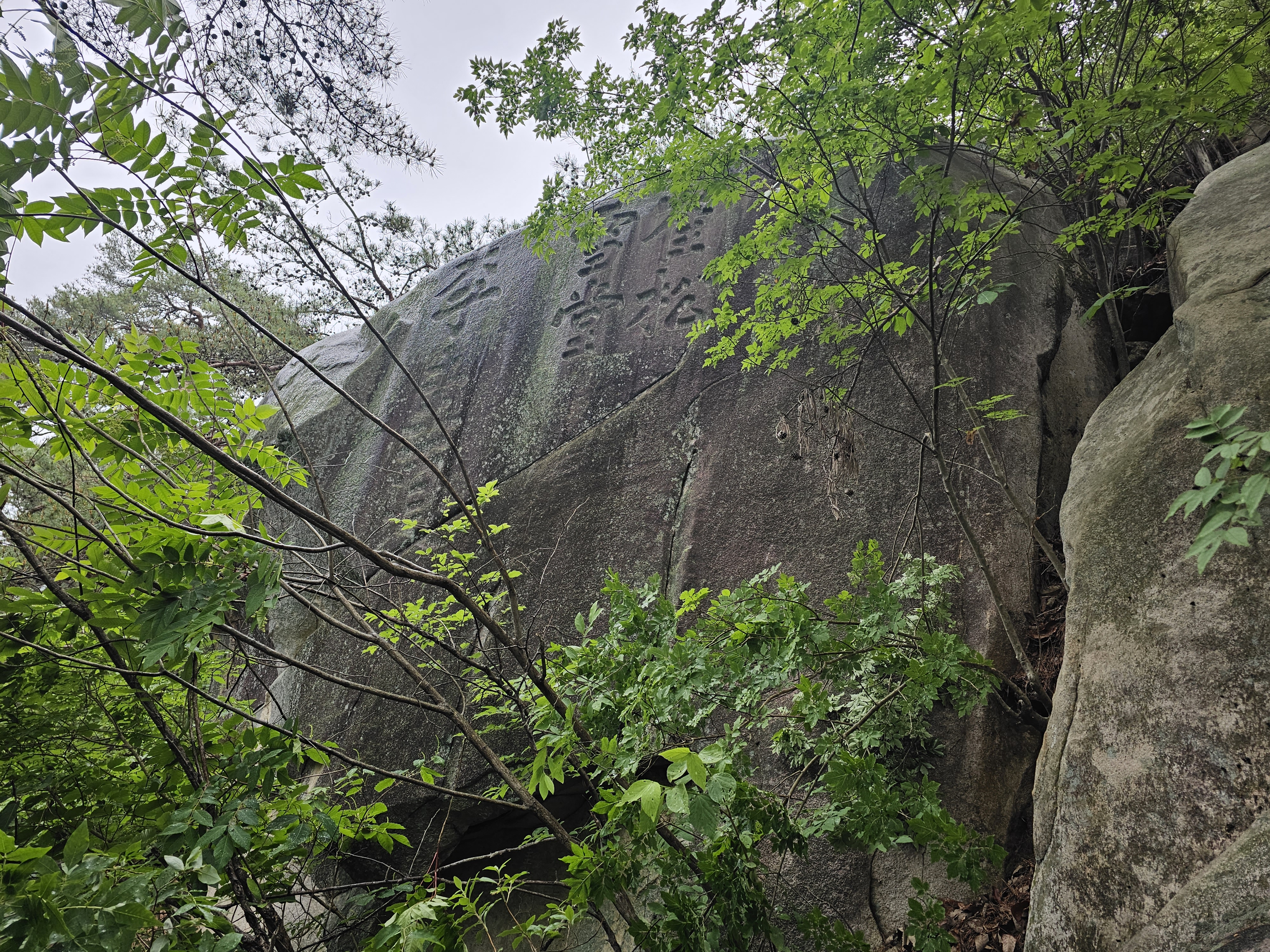 소나무 사이에 바위가 보이고 각석이 세겨진 것을 볼 수 있다. 내려오는 길에 좌측 길에는 바위 곳곳에 이름들이 새겨져 있다. 오른쪽 바위 가장 높은 곳에 있다하여 망원으로 당겨보니 바위 끝부분에 최송설당이라는 이름이 보인다.
