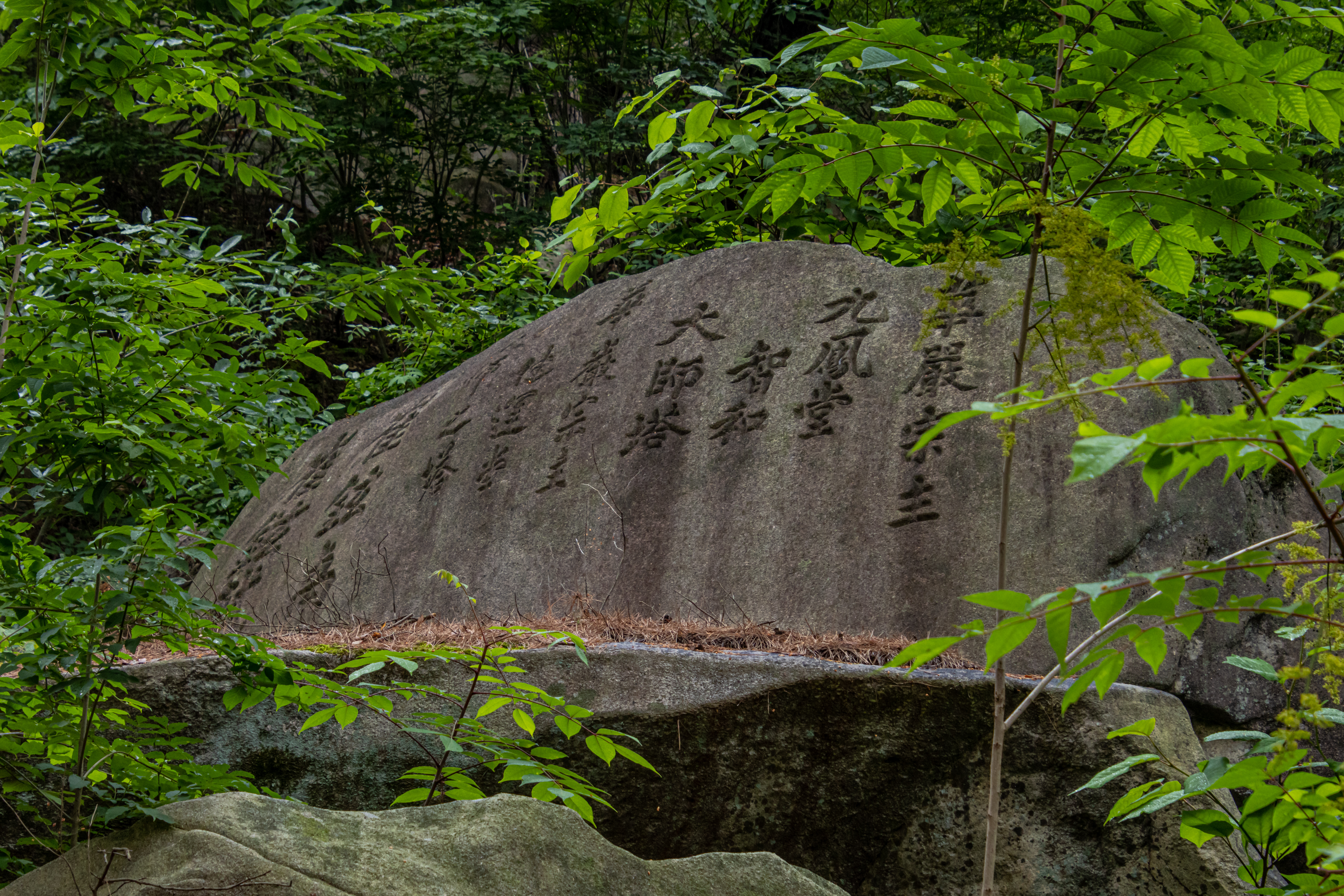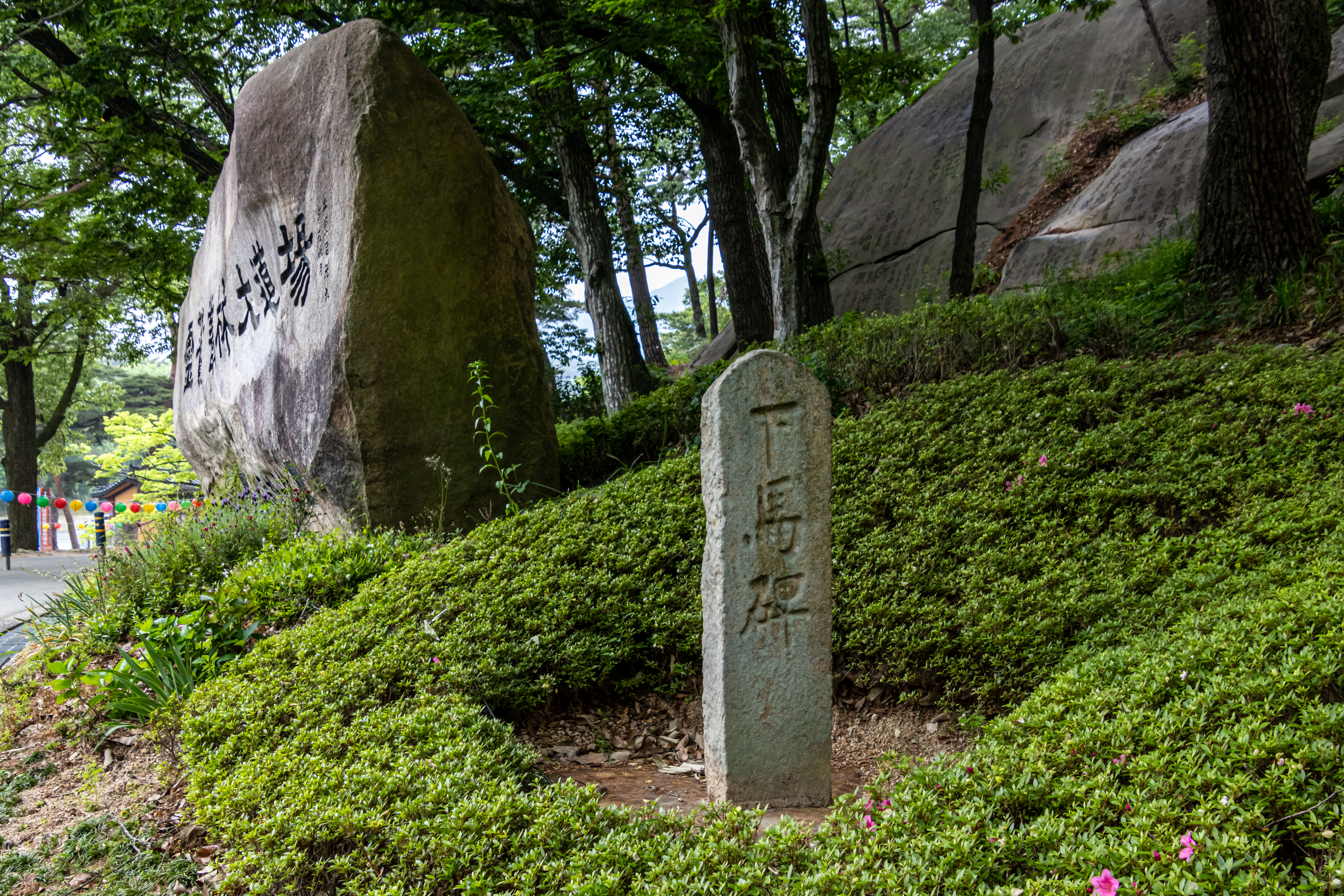 통도사 무풍한송 길, 다비장과 청류정을 지나면 오른쪽 솔 숲 사이에 우뚝 솟은 이름바위가 있다. 아마 하마비 근처의 선자바위 정도는 아니지만 바위 곳곳에 이름들이 새겨져 있다. 오른쪽 바위 가장 높은 곳에 특이한 이름, 최송설당(崔松雪堂, 1855~1939)이 있다고 한다.