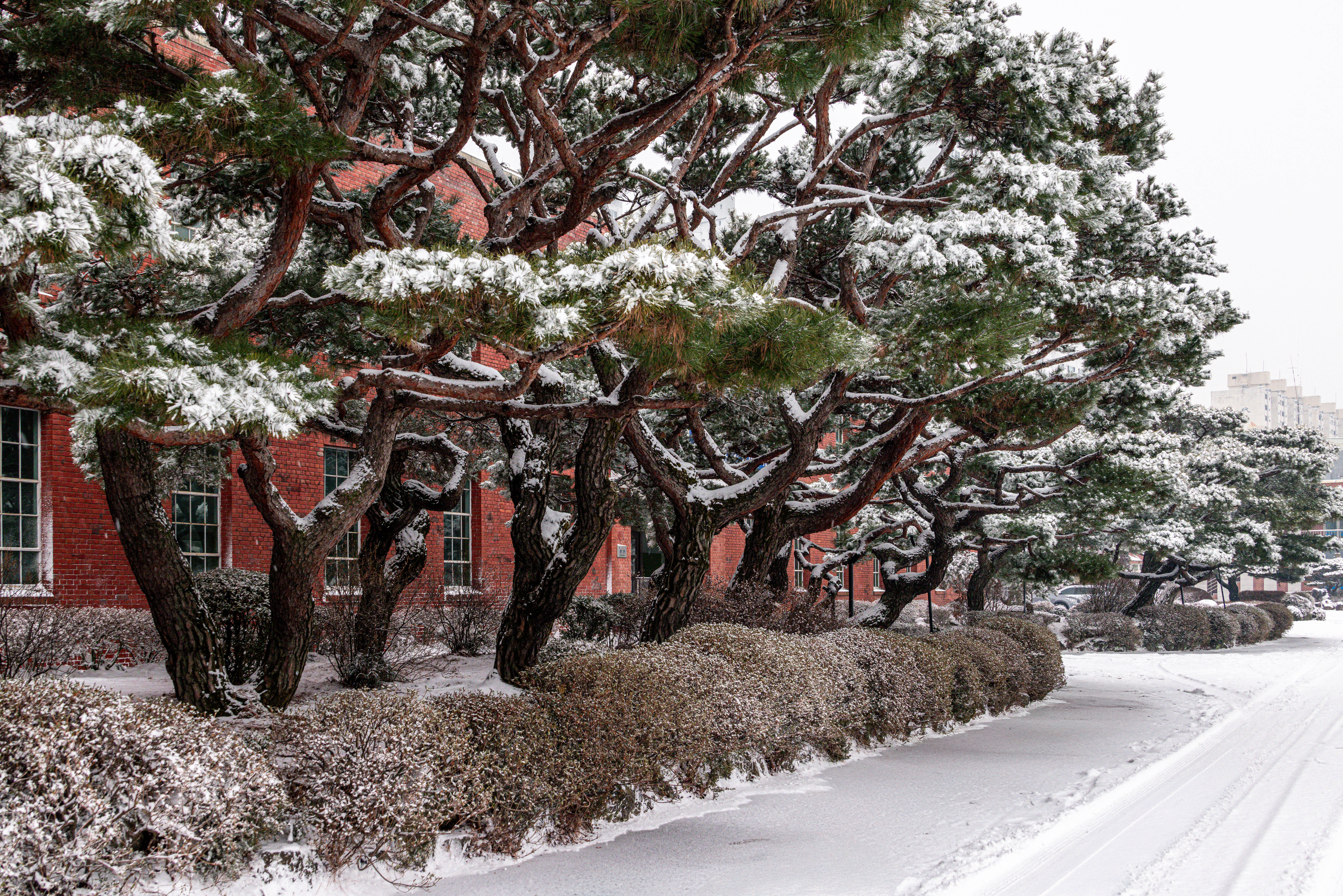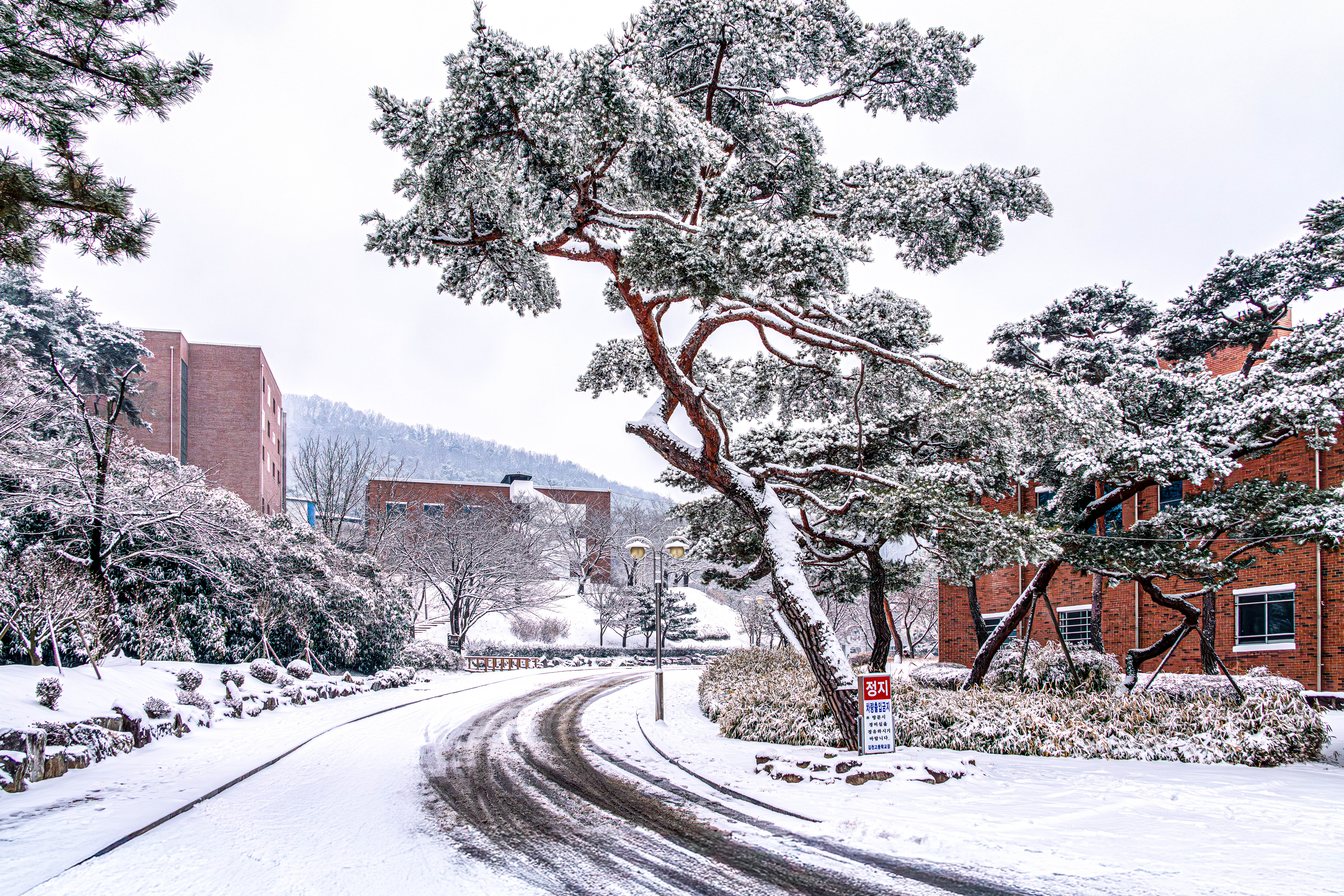 정월 대보름 아침, 교정에 눈이 소복히 내렸습니다.