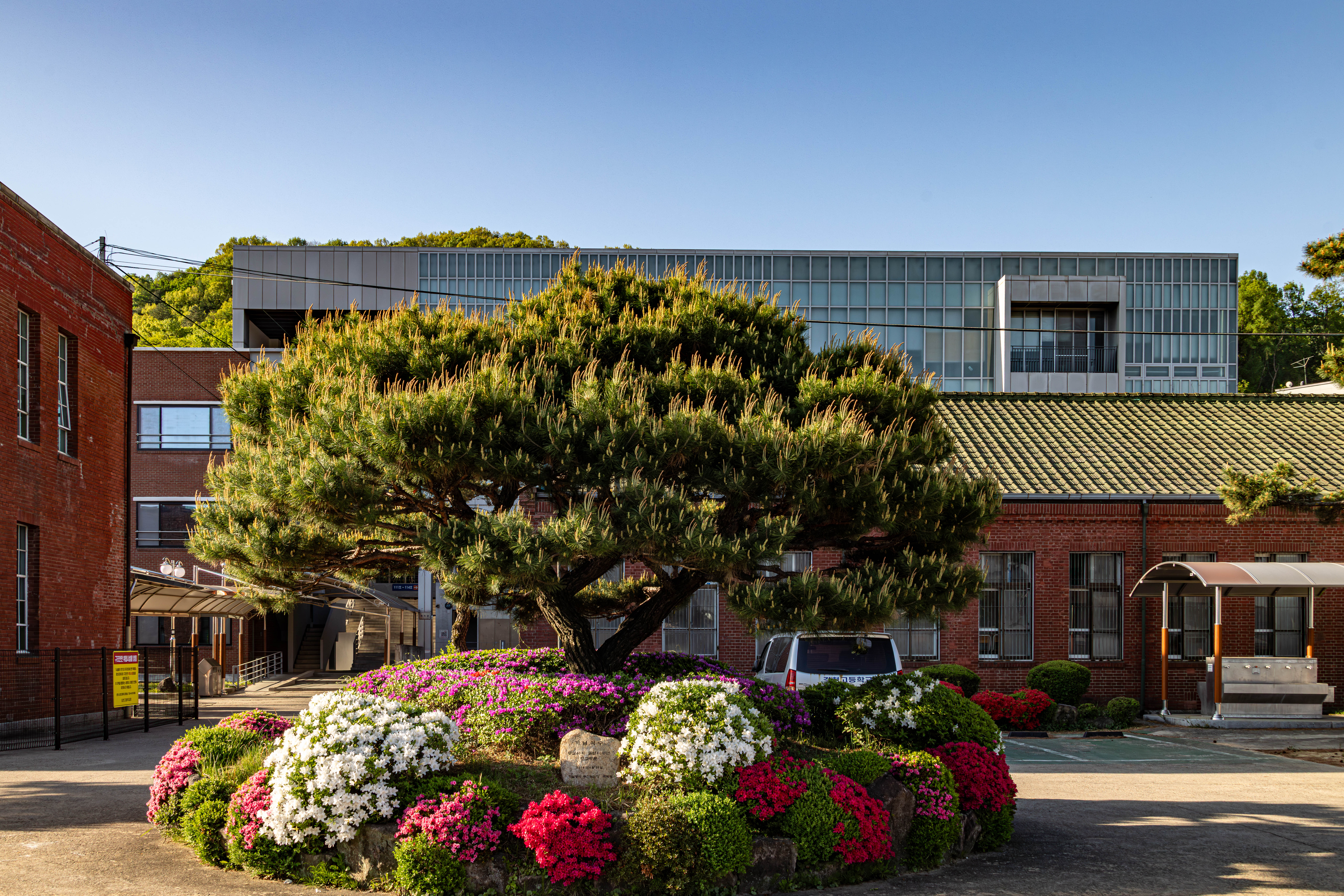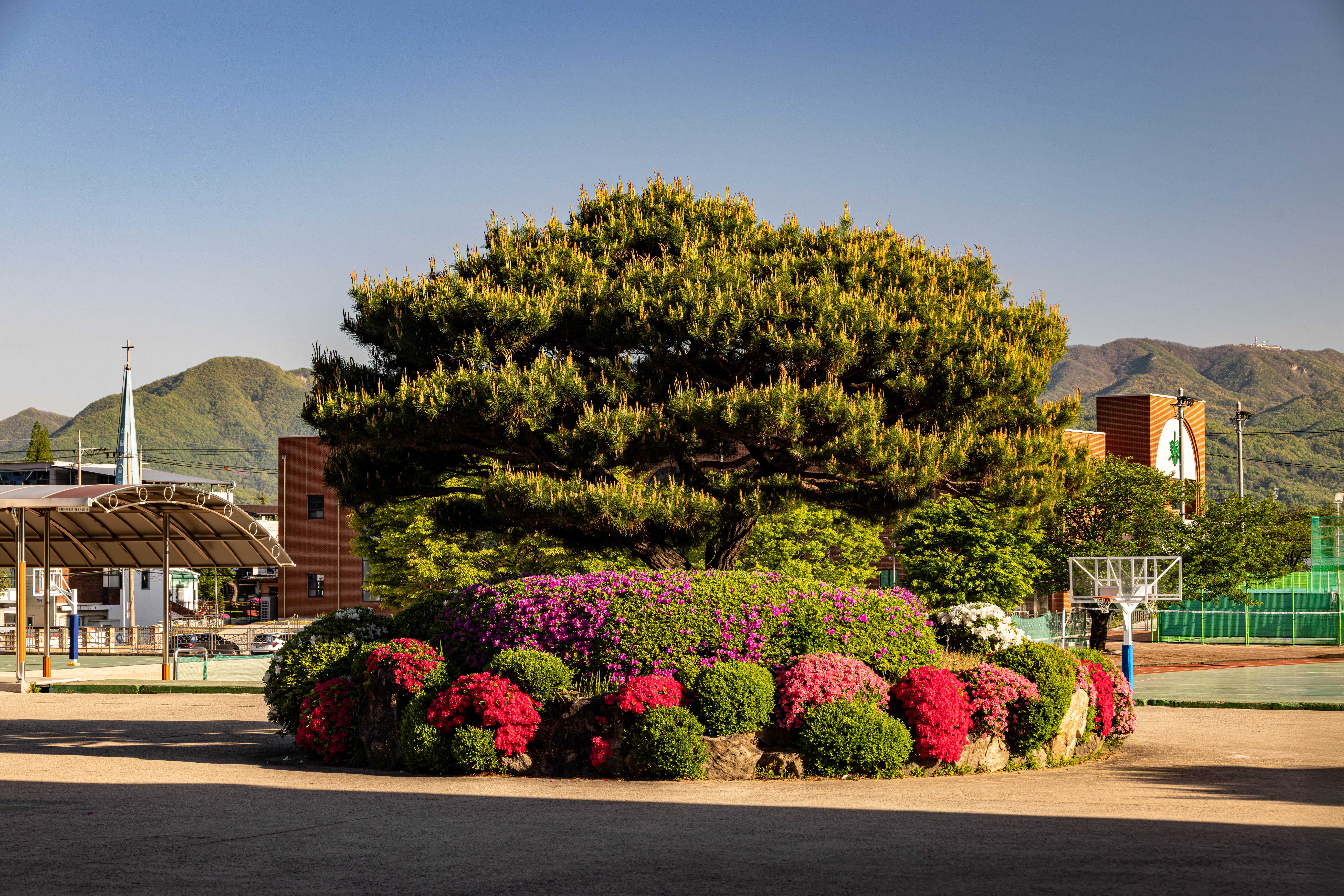 연산홍이 교정 곳곳에 피었습니다. 등나무도 한몫하고..
